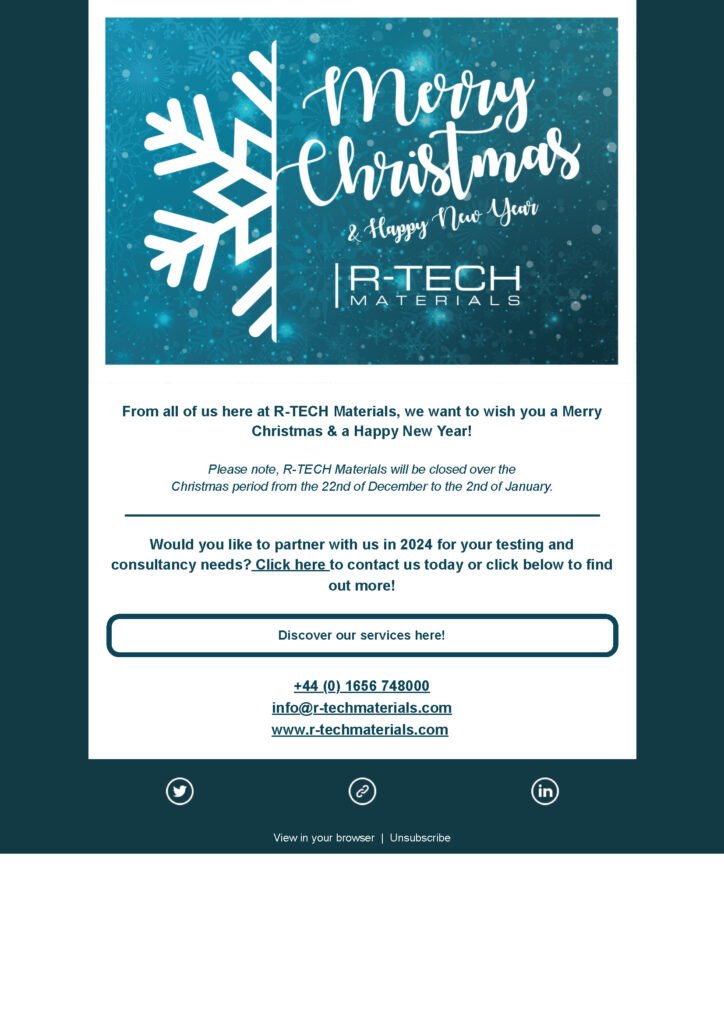 Merry Christmas and Happy New Year – Opening Hours Geraint Havard 2 years ago R-TECH Xmas Email – PDF